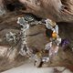 • **材料**:泰国银、块状超七(约13x22毫米)、小树胶花水晶(9.5毫米)、块状透明水晶(约9.5x12毫米)、拉长石(6毫米)、 925纯银(圆珠3.5 和 4 mm)。