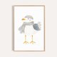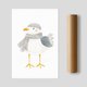 《围巾海鸥的冬日散步 Seagull in Knit Scarf》由插画家 Purple 创作,透过细致的针织质感与温和笔触,描绘一只有个性的海鸥角色。冷暖色调的搭配展现季节气息,也为空间注入一份柔和的幽默感。