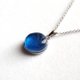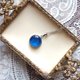 以浓郁的蓝色为背景,点缀花朵和珍珠,搭配闪粉与白色线条,设计出优雅的吊坠。利落的方形线条能让颈部线条看起来更为修长。深沉的藏青色是秋冬季节的绝佳搭配单品。