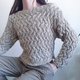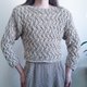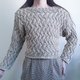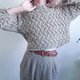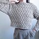 复古棕色棉质钩针毛衣,短款休闲毛衣