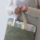 织带提把可收入笔电包外面的侧袋中,变成手拿。
