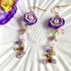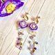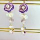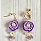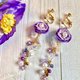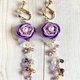 这对可爱的耳环是用mizuhiki紫色玫瑰和珠子制成的。