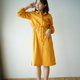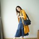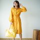 前扣彼得潘领洋装,荷叶边长袖口,腰部可随意调整。单色设计,可当外套轻松穿搭。