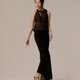 此款上衣的背链吊坠集结了海洋玛瑙及各色玻璃珠而生,在设计上以凸显主石为主要目标,夺目却不繁杂,实为点睛之笔。 面料使用意大利针织蕾丝布料,深棕色的光泽感造就了富足沈稳的感觉。 领部侧绑带设计可随喜好绑定。
