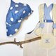 - 整体配色选择清新的蓝、黄、白色,结合点点与条纹元素,为宝宝增添更丰富的活跃可爱感。