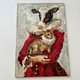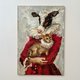 棕牛画原创油画动物画牛与猫肖像牛墙壁艺术、农场绘画、农舍墙壁装饰 10 x 12 英寸