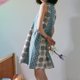 用两种不同的花布拼接而成的V字领背心打皱折裙,巧皮可爱的版型很适合夏天,虽然都是花不但拼起来没有违和感很协调,让整个洋装更佳的活泼可爱。版型为窄但不合身。