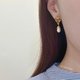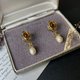 - 1928小宫廷垂缀珍珠耳夹 尺寸:3.3x1.1cm 材质:合金/仿珠/仿石 制造年代:1980s