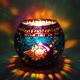 The candle holder is painted with professional stained glass paints. Thanks to the gel gloss medium, each candle holder has a unique surface texture which reflects the light in a very beautiful way. The candle holder creates a pleasant romantic atmosphere.