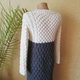 这款女式手工针织毛衣连衣裙精心制作,注重细节。这款连衣裙采用白色针织上衣和深灰色针织下装,打造出时尚的双色外观。采用长直袖和经典圆领设计,