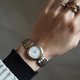 圆形表壳搭配金色表圈,映照出柔和光泽,构成端庄大方的视觉感受。