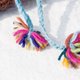 ▲侧边可调节松紧的绑带,手工的羊毛流苏球,让质感加分