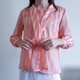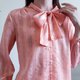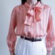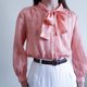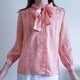 复古桃色圆点衬衫,领结领,复古透明条纹衬衫