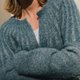 - - 柔软的羊驼针织外套,像把秋日微光披在肩上。 低调的蓝灰色沉静又温暖,微松的版型轻轻落在身上,随意却有质感。 从肩到胸口的细致纹理,让简单也有层次,蓬松的袖型增添柔软轮廓,不呆板。