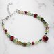 ・石榴石:梨形珠 4~5x6~7mm ,小算盘珠2mm,圆珠3mm,扁圆切割珠5mm。尽量挑选红润透明的石榴石,但仍可能有内含物,室内或缺光时颜色偏黑;因钻孔因素,扁圆切割珠珠孔可能有些微缺损。
