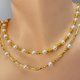 直径约4.5-5mm的天然淡水珍珠呈现出强光炫彩的天然美感,颗颗珍珠有强光炫彩,虽有微瑕微生长纹,但是整体间隔排列成一线并由s925银14k注金的切花配件。间隔排列呈现出微波般的色彩层次感。纱织小姐为其配以新型磁吸扣,形成总长约43cm的双圈华丽轻奢款项链毛衣链。你可以一边摇曳生姿,一边简约美好,可以点亮你的所有简单衣裳。美好的天然淡水珍珠表面呈现出难以名状的炫彩色调,自然光下每一颗都分别呈现出各自的七彩光芒炫彩,皮光细腻,微瑕炫彩,似镜面可照出人影,美得不可方物。