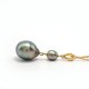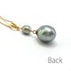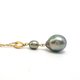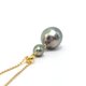 此坠饰串连着一颗巴洛克造型的有核黑蝶珍珠,以及一颗黑蝶无核珍珠。