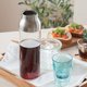 - 这是一个简约乐活玻璃水瓶。无方向性的出口,可以轻易的从任何方向倒取饮品,