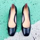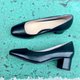 画儿#8039||小牛皮 经典方头中跟鞋 曜石黑 ||