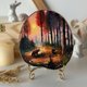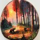 一幅描绘夕阳下森林景致的独特画作,创作于天然木片之上。以细腻的笔触与色彩精心绘制。这块质朴的木片来自回收的树木,以压克力颜料手绘而成。此艺术品已准备好运送,寻找并点缀它新的家。
