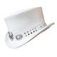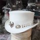 “银翼骷髅头饰带 经典款白皮革礼帽”是一款风格前卫的帽子,专为渴望展现独特风格的您而设计。