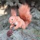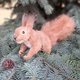 嗨!我想向你介绍一只红松鼠。它高7.87英寸(约20厘米)。由人造毛皮制成,里面是半羊毛。它还配有骨架。松鼠可以转动头部,弯曲爪子和尾巴。鼻子、手指和爪子由烧制黏土制成,无法弯曲。用压克力颜料上色。手工烧制的松鼠球果也由烧制黏土制成。
