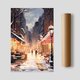 《雪夜街角 Snowy Evening Street》描绘了一条被冬雪轻柔覆盖的街道。城市建筑在雾蓝夜色下交错延伸,而街角的黄灯则像冬日里最温暖的邀请——透出咖啡香、欢笑声与微微的热气。