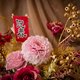 温柔粉色、富贵红色与金色交织,
