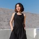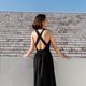 - One Piece Dresses with X design on the back / Black colour Fabric : Cotton Linen (Blend)