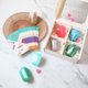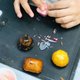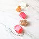 而让宝石皂作品能充满各式各样色彩的颜色组合,是选用来自食品级耐碱色水、妆品级矿物色粉、云母珠光粉等调制而成,不仅显色度佳且方便操作。另外,是使用清水即可洗净不残留的安全颜料。