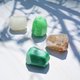 宝石皂完成后,采用PVC膜包覆皂体,可以避免潮湿出水和有效保质。也可置放想扩香的空间中,是很好的居家香氛选择。
