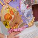 Set of short-sleeve shirts with smocked backs and pastel purple colors. with a two-pocket white skirt.