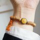 - 天然库克大肠蜜蜡手链,天然库克大肠珠,搭配925银镶蜜蜡隔珠、白玛瑙切面珠、一线天珠,925银羽毛。