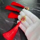 😍 红色流苏耳环和樱花图案的红色珠子,给人一种如春日薄雾般柔和优雅的印象。