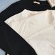 採用进口有機純棉,手感軟糯,版型1/3微高领,比一般圆领更有细节,侧面有小开叉。