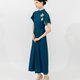 这款现代旗袍融合了柔美的动态与艺术气息。中长款设计搭配飘逸的雪纺袖,为经典轮廓增添了轻盈灵动感;挺括的上身与拼接裙摆则勾勒出优雅修长的身材。