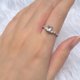 主石:海蓝宝石尺寸 5×7 毫米。 副石:白色黄玉 2 毫米。 材质:纯银镀铂