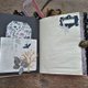 Contains: tea dyed paper, archival papers, lace, charms, fabric cover