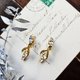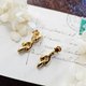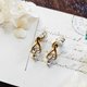 这款Trifari的作品有着优雅的流线型镀金线条,顶端1颗马眼莱茵石搭配下方垂坠的简洁镀金底座与3颗马眼莱茵石,整体设计十分高雅且大方