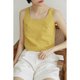 - 柠檬黄 爱露锁骨的方领控 复古一字方领无袖上衣方背心肌理亚麻棉