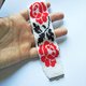 红玫瑰黑花白珠子手链手工饰品礼物女