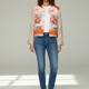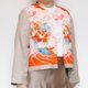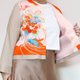 前襟部分采用复古和服布料,鲜艳的花卉与折纸鹤图案令人印象深刻。