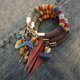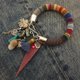 Crochet tube colorful bracelet - 10 mm striped multicolored bangle with silver tone end caps. Included 38 colors as: purple, violet, blue, red, pink, beige, orange, yellow, lavender, grey, raspberry, green, turquoise. Different beads, turquoise, crochet pebble, evil eye, leather, crystal, charms and tassel.