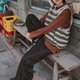 而且裤口部份也不是直接散出去的宽口