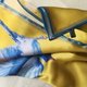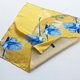 这款是黄色的月亮里,穿过一只飞鸟。原作是油画,用仿佛刺绣一样的笔触画的鸟。月亮则是半抽象的几笔。明亮的黄色丝巾,是一个朋友要订制,选了这款月影,鸟儿是蓝色的,略略调了一点点颜色。一共有三款,这款保留了油画的肌理。目前预售时间为一周。 桑蚕丝 55*55 默认手工卷边/可选机器直边款/也可选无边框款