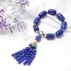 **1.图上青金石约16.5-21mm、宽12.5-13.5mm,流苏(含切面青金石+珐琅蝙蝠+青金石圆珠)长约66mm,整体手围约16.5cm。**