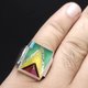 圭亚那国旗,缀以金色玛瑙、绿松石、黑发晶。