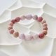 【特征】采用了紫锂辉与蔷薇辉圆珠制成的晶石手串。整体为粉红粉紫,颜色活泼有朝气,给人一种温暖的力量。长期佩戴能帮助人养生和理疗。能治愈身心,提升人的各种运气。