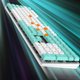 - 开合式脚撑|悬浮式设计|全键无冲 PBT球形键帽|多媒体按键|时尚撞色 铝合金金属上盖|一体式设计|可调节支脚