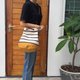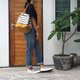 - Mustard Stripe Canvas Bucket Bag w/ Strap Leather Handles